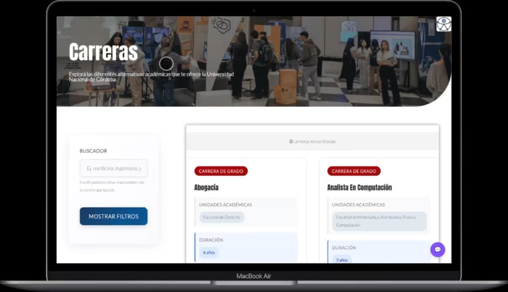La web sirve de apoyo a la Muestra de Carreras que se lleva a cabo todos los años en la Ciudad Universitaria de Córdoba y a la Guía de Carreras que edita la UNC.