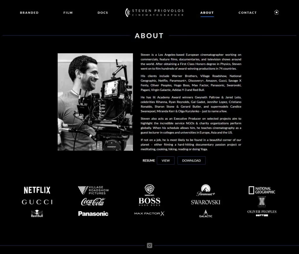 Desarrollo en WordPress, js y css para el director de fotografía en documentales y campañas de publicidad con base en EEUU Steven Piovolos.